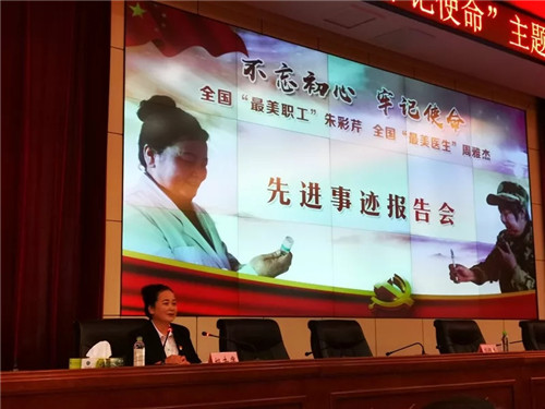 “時(shí)代孕育榜樣 ,榜樣引領(lǐng)時(shí)代” 。6月21日上午,龍江森工集團(tuán)黨委舉行“不忘初心、牢記使命”主題教育先優(yōu)模事跡報(bào)告會,主會場和分會場近兩千名黨員聆聽了 “全國勞?!薄白蠲缆毠ぁ闭春恿謽I(yè)局防火瞭望員朱彩芹同志、全國“最美醫(yī)生”穆棱林業(yè)局楊木橋林場醫(yī)生周雅杰同志所作的報(bào)告。