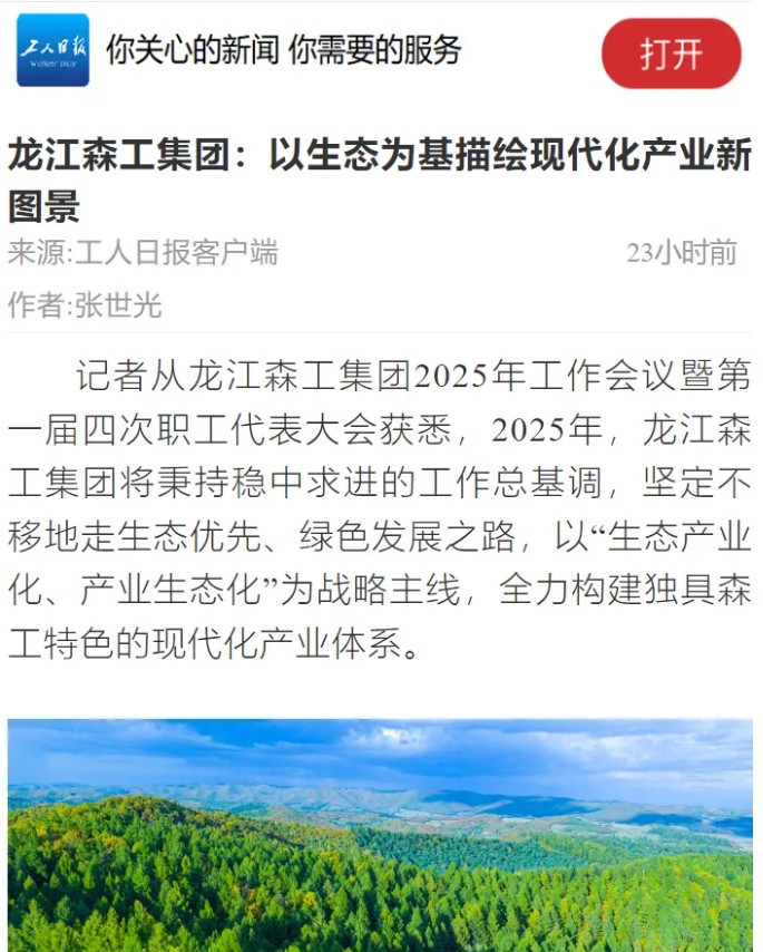 記者從龍江森工集團2025年工作會議暨第一屆四次職工代表大會獲悉,2025年,龍江森工集團將秉持穩(wěn)中求進的工作總基調(diào),堅定不移地走生態(tài)優(yōu)先、綠色發(fā)展之路,以“生態(tài)產(chǎn)業(yè)化、產(chǎn)業(yè)生態(tài)化”為戰(zhàn)略主線,全力構(gòu)建獨具森工特色的現(xiàn)代化產(chǎn)業(yè)體系。