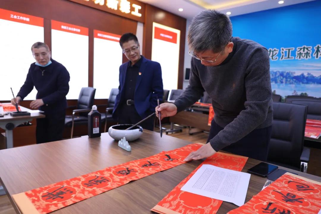 妙筆生花迎新年,翰墨飄香送祝福。29 日上午,龍江森工集團(tuán)總部機(jī)關(guān)“迎新春 寫(xiě)春聯(lián) 送祝?!被顒?dòng)在職工之家舉辦,來(lái)自林區(qū)的書(shū)法家和書(shū)法愛(ài)好者們現(xiàn)場(chǎng)創(chuàng)作,通過(guò)一幅幅春聯(lián)將筆尖上的年味和美好的祝福送給員工。